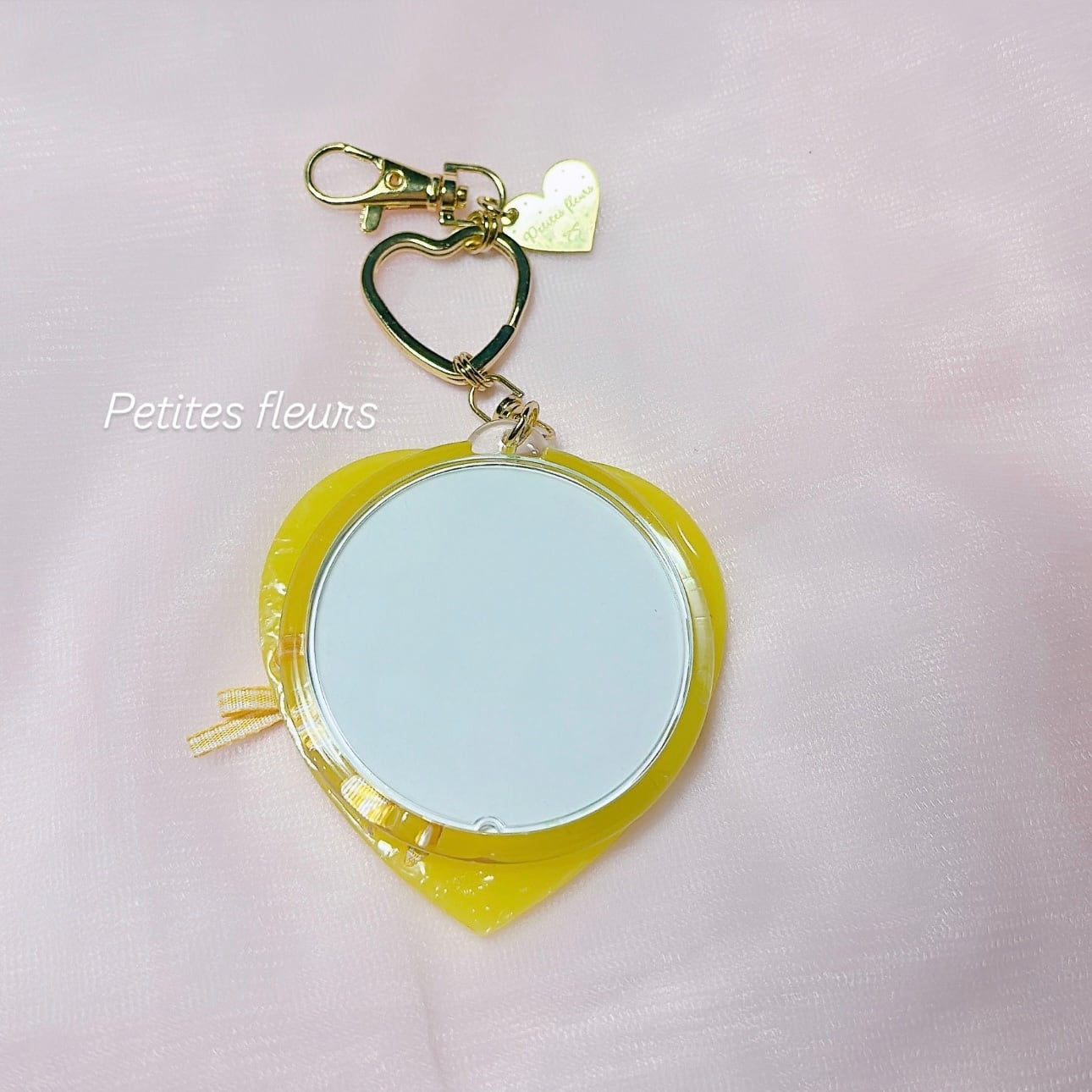 【完成品】キュンとときめく♪ ハートフォトキーホルダー #5 ♥イエロー♥ ハートの編み上げ フォトケース 推し活にも♪